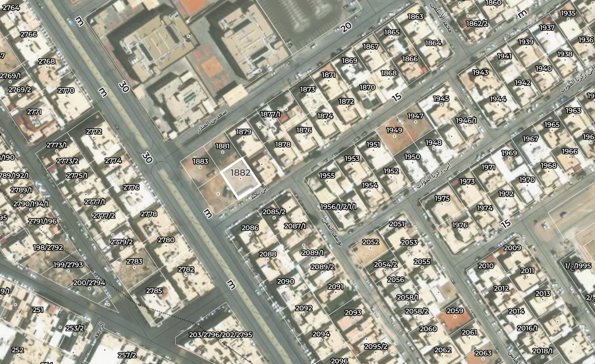 شمال: قطعة رقم 1881 بطول 20م